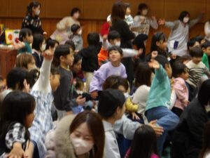 タンバリンやスズなど楽器を使い、ピアノに合わせて合奏をしました。子どもたちが考えたオリジナルのリズムも作り、素敵な音色が響きました。