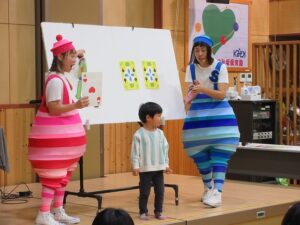 パネルシアターでは歌に合わせて出てくる動物たち。サンタさんがそれぞれにプレゼントを届けてくれ、何のプレゼントが届いたかを子どもたちとクイズを出し合いながら楽しみました。