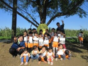 卒園製作で、菊鹿町にある「あんずの丘 伝承工芸館」にて親子でお皿に絵付け体験をしてきました。天気も良く周りの景色は葉っぱが、赤や黄色に色づきとても綺麗でした。