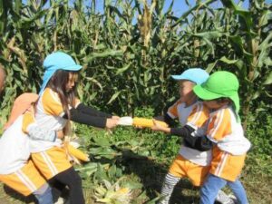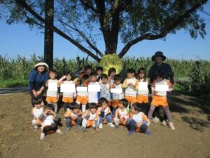 卒園製作で、菊鹿町にある「あんずの丘 伝承工芸館」にて親子でお皿に絵付け体験をしてきました。天気も良く周りの景色は葉っぱが、赤や黄色に色づきとても綺麗でした。