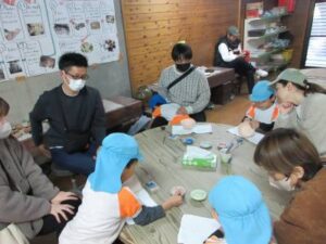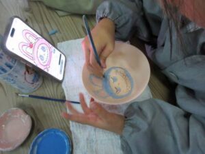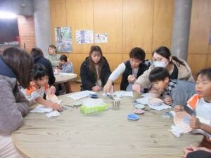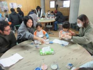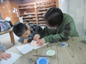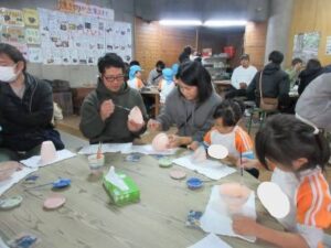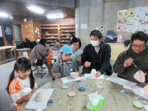 親子で、一緒に色を選んだり、会話を楽しみながらクレヨンや絵の具で絵付けをしていると、お母さん、お父さん方も「自分のお皿を作ってみようかなぁ~」とお子さんと一緒に体験をされる方もいらっしゃいました。