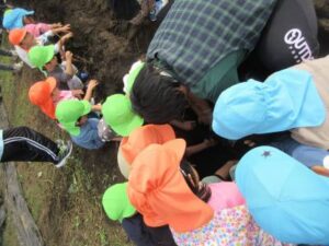 お気に入りのキャラクターを描いたり、模様を描き、世界に一つだけの素敵な作品が完成しました。完成した陶器は焼いてもらい、後日卒園記念品として、卒園式の日にお渡しします。完成まで待ち遠しいです。