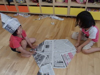 輪っかつなぎや、三角・四角の折り紙をつなげたりと、七夕飾りが出来上がっていました(*^_^*)