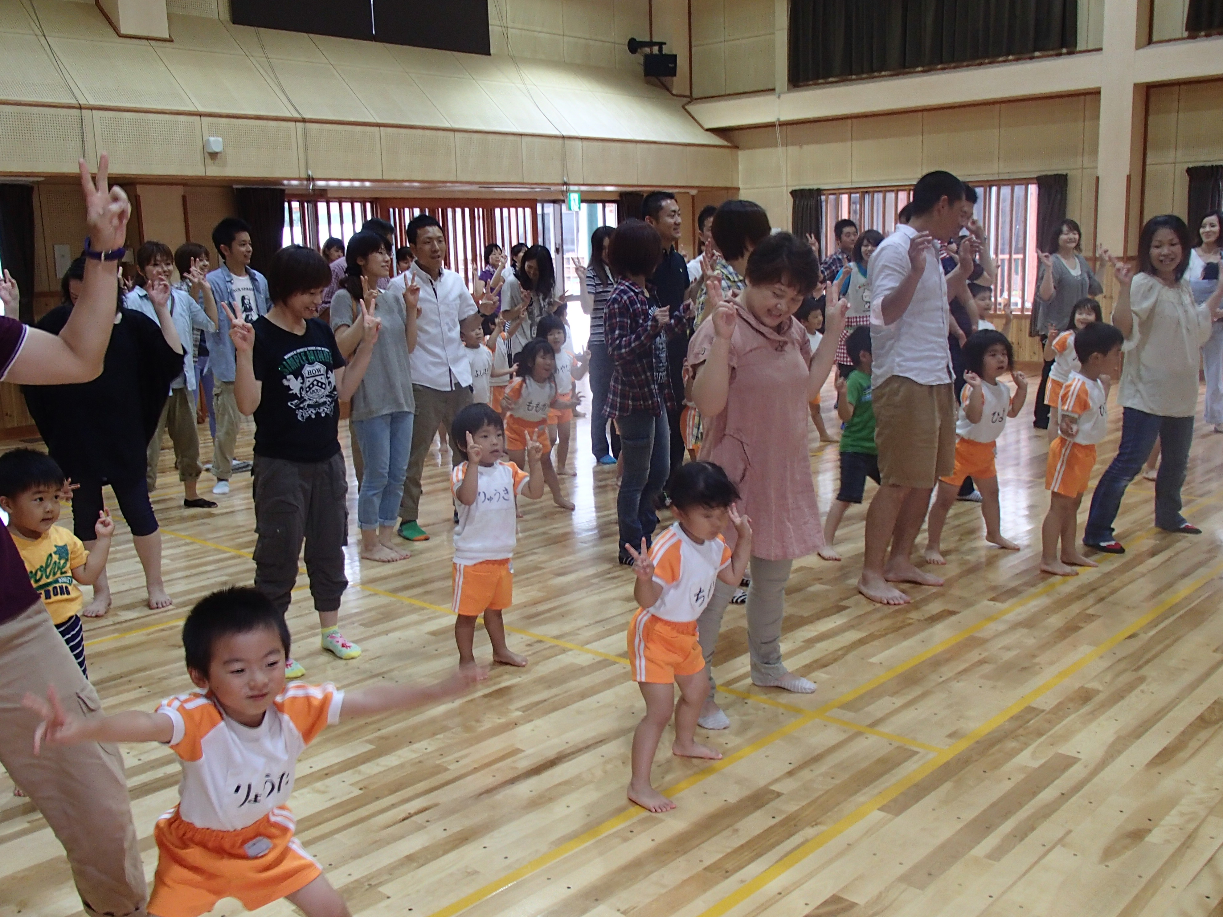 ホールで親子で体を動かして遊びました