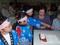 おじいちゃん・おばあちゃん達と一緒に、「むすんでひらいて」「もみじ」の歌も歌いました♪