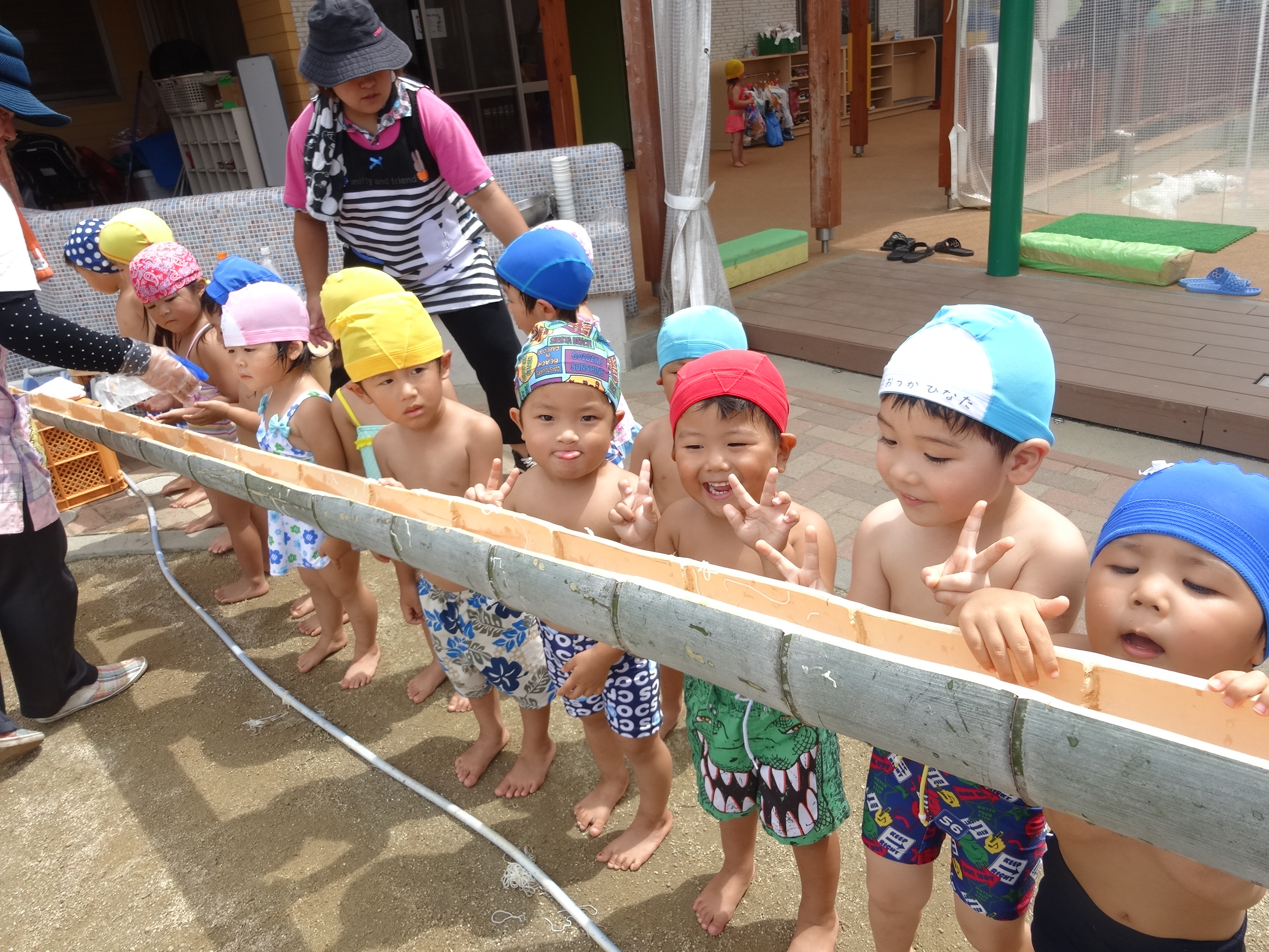 先週の木曜日、以上児クラスのお兄ちゃん・お姉ちゃん達が流しそうめんをするということで、そよかぜぐみも飛び入り参加しました?(^o^)/