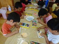まずは、カード作り・・・♪♪♪とってもかわいいカードに仕上がりました!!保護者の方々へのプレゼントなので楽しみにしていてください☆