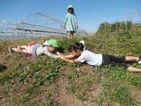 近くのあぜ道では、枯草クッションの坂道をゴロゴロー(>_<)