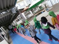 校庭で遊ばせてもらっていると、体育の授業をしていた6年生のお兄ちゃん、お姉ちゃんが「何歳?」「どこの保育園?」と、話し掛けてきてくれました♪