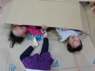 途中、ダンボールにもぐって遊ぶお友だちも!!(笑)
