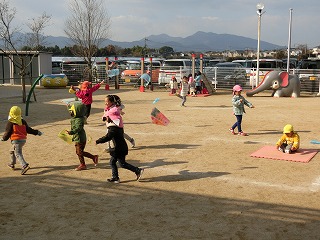 ほしぐみは、長い竹を竿にして餅を焼きました。