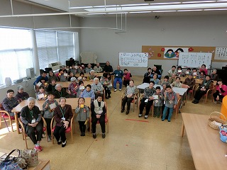 ゲームのあとは、『春が来た』を歌い、おじいちゃんおばあちゃんと握手をしたり、お祝いの言葉やメダルとメッセージカードも頂きました。