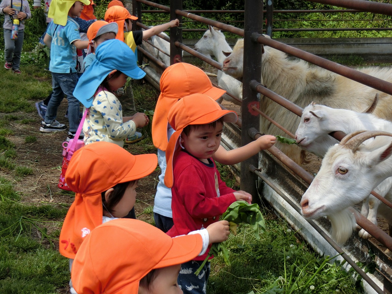 先月はミルクを飲んでたオオヤブファームの赤ちゃんヤギさんも今回はみんなが