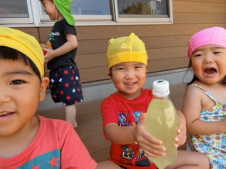 色の変わったお水で、今度はジュース屋さんごっこ(*^_^*)