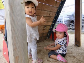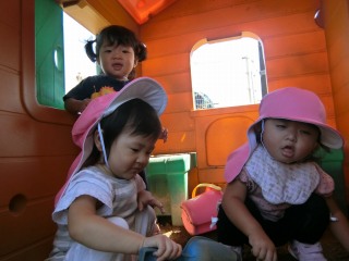 お姉ちゃん達に遊んでもらったり、チャイルドハウスに入ってまごと遊びも