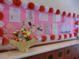 ほし組のみなさん、ご卒園おめでとうございます。エントランスには頂いたメッセージが子どもたちの卒園をお祝いしてくれました。