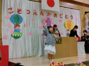 保育園生活での思い出を胸に「よろこびのうた」や「さよならぼくたちのほいくえん」を歌う姿に成長を感じます。