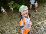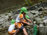 早速ニジマス掴みが出来る川に行き、ニジマスの掴み方を教わり、子どもたちも一緒に掴み方の練習をしました。