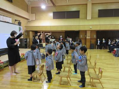 たいよう組・つき組さんからほし組さんへの『送る言葉』は録音でしたが、いつも優しくお世話をしてくれるほし組さんへの感謝の気持ちが込められていました。