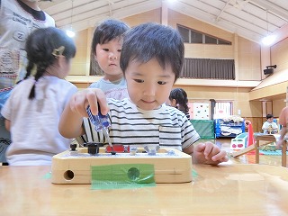 木のおもちゃでもたくさん遊びました。