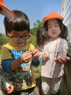 嬉しそうな子どもたち。みんなで春の風や花、虫を見つけに行きました。
