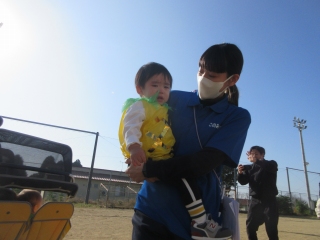 そよかぜぐみの子どもたちはお名前を呼ばれると手を上げ元気にお返事をすることも出来るようになりました。かけっこの曲を聞きながら「よーいドン」みんなで元気いっぱい走りました。また、お遊戯のどうぶつ列車では「うさぎ、さる、ネズミ、ワニ」の中から自分で選んだ動物の衣装を着て踊ることが出来ました。