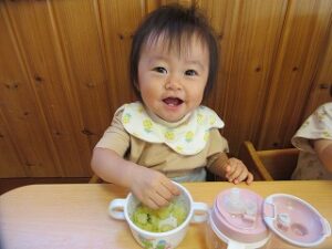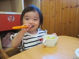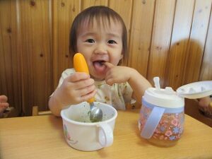 スプーンの使い方も上手になり、一人で食べれる子も増えました。