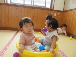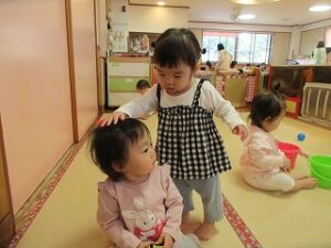 また、お友だちにも興味を持ち始め、よしよししてあげたり、一緒に玩具で遊んだり、ほほえましい姿が増えました。