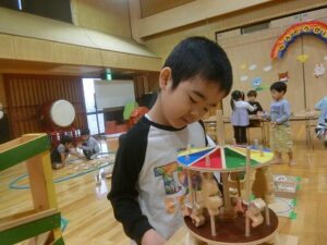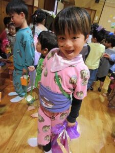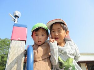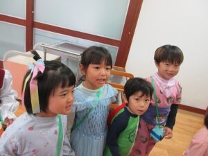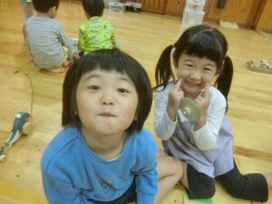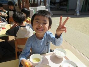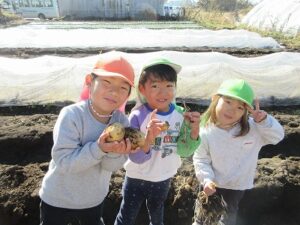 日に日に寒さが厳しくなっていきますが、日頃の保育の中で子どもたちは鬼ごっこをして園庭を走り回ったりふれあい館周りやあぜ道、オオヤブデイリーファームに散歩したりなど体を動かして遊び、暑さで難しかった活動や遊びを十分に楽しむことができました。