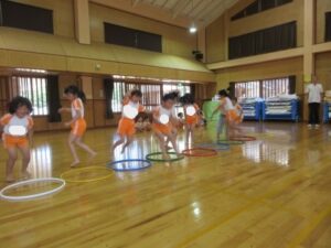 ほし組は、小学生になっても体育の授業が楽しめるように、また、つき・たいよう組は進級して楽しく体育遊びに取り組んでいきたいと思います。