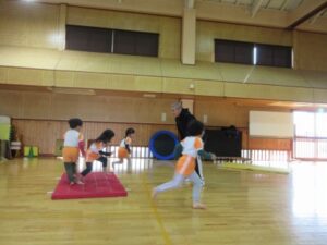 年間を通して、マットや鉄棒、フープ、なわとびなどに触れることで少しずつ挑戦することが出来るようになってきました。