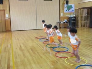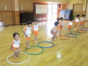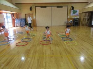 ほし組は、小学生になっても体育の授業が楽しめるように、また、つき・たいよう組は進級して楽しく体育遊びに取り組んでいきたいと思います。