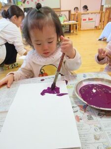お友だちと遊ぶ姿も増え、一緒に同じものを使って遊んだり、ままごとではお友だちに食べさせてあげたりと、交友関係が広がっており成長を感じています。