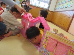 メルちゃんで遊ぶと、メルちゃんの家に入ろうとする姿も見られ、かわいかったです。