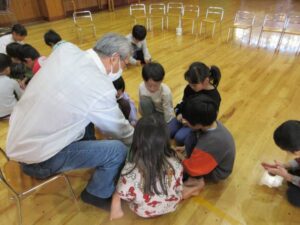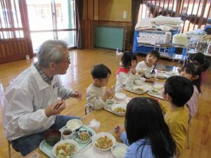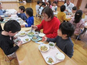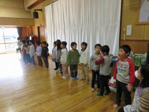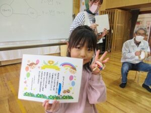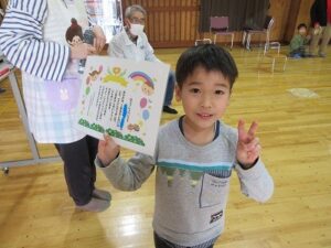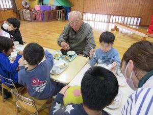 最後は、みんなで合唱のプレゼントや感謝の気持ちを木工ボランティアの惠さんや水口さん、北村さんに伝え、一緒に給食まで食べることができ楽しい時間を過ごすことができました。