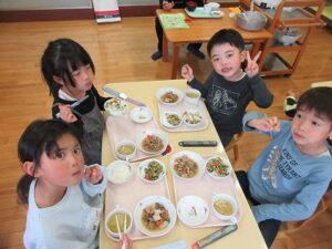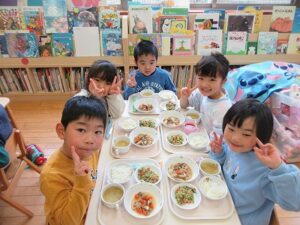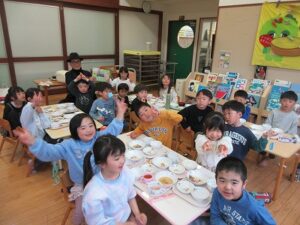 会食では、那須さんに「好きな動物何ですか?」「好きな食べ物何ですか?」と子ども達から質問する姿が見られ、一緒にお話することができ楽しい時間となりました。