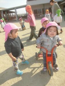 三輪車やクライミング・ボール遊びなど体を使った遊びも楽しみました。