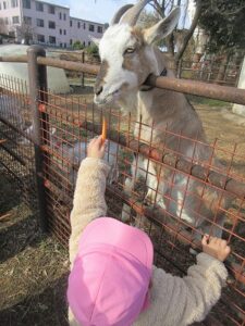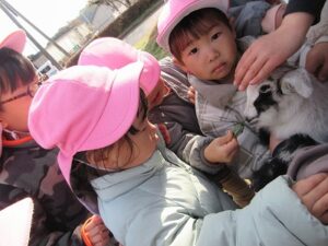ヤギにエサをあげました。