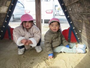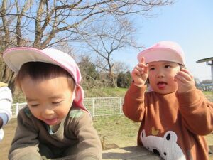 散歩や築山遊び、外でのランチタイム!など 園での1月~3月の様子です。